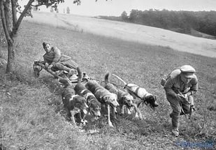 — ездовые собаки, которые на небольших телегах подвозили боеприпасы и увозили на них же раненных солдат. За годы войны ими было вывезено с линии огня около 700 тысяч раненых и доставлено около 3500 тонн боеприпасов.