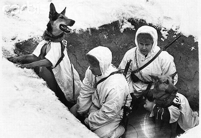 — Ужас на врагов наводили собаки — истребители танков. Этих собак готовили к одному — единственному заданию в их жизни – подрыву вражеских танков. Для этого их тренировали не бояться подлезать под движущиеся танки. Перед заданием на них одевали специальные мешки с минами. И как только собака оказывалась под бронетехникой, мина взрывалась. Таким способом за время войны было уничтожено около 300 вражеских танков. Когда в 1941 году фашисты рвались к Москве, на Волоколамском шоссе танковое подразделение врага было атаковано собаками — подрывниками. Весной 1942 года в боях под Москвой одно только появление собак на поле битвы обратило несколько десятков фашистских танков в бегство. А в Сталинградской битве собаки сожгли целую танковую бригаду (63 танка врага). Причиной прекращения использования собак подобным способом стал тот факт, что такие собаки стали бросаться под гусеницы не только немецких, но и советских танков.