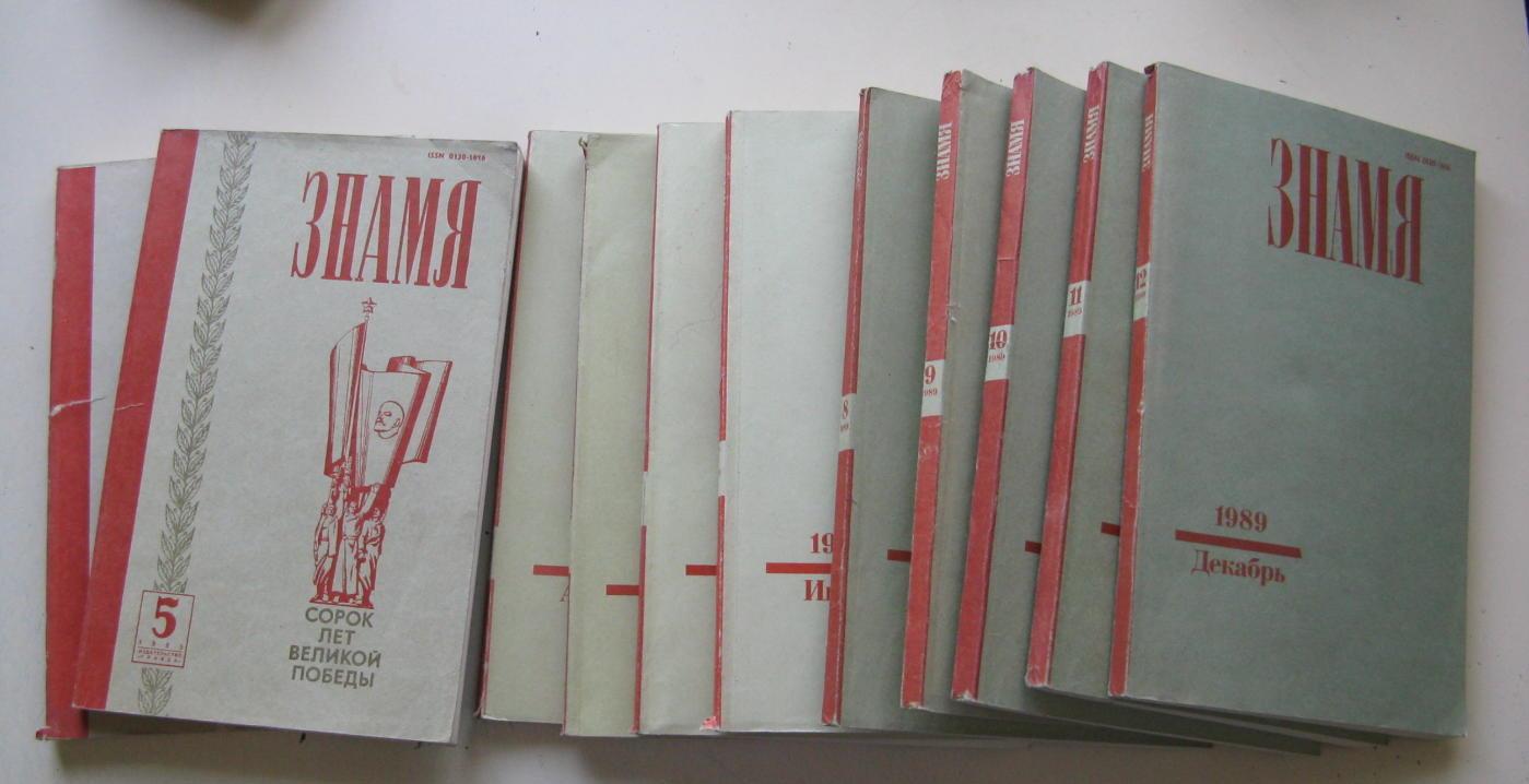 Сразу же следом были «По праву памяти» А. Твардовского, «Пашков дом» Н. Шмелева, рассказы Ф. Искандера, один из лучших рассказов А. Битова «Фотография Пушкина (1799–2099)», повесть «Ночевала тучка золотая» А. Приставкина… В общем журнальном буме тех лет «Знамя» занимало лидирующие позиции. На его страницах еще в июне 1986 г. было опубликовано «Ювенильное море» А. Платонова, а уже в следующем году — «Повесть непогашенной луны» Б. Пильняка и «Собачье сердце» М. Булгакова, рассказы В. Гроссмана, А. Кима, стихи А. Ахматовой, Б. Ахмадулиной, «Крестный отец» М. Пьюзо. Впервые за многие десятки лет журналы прочитывались практически от первой и до последней страницы, в метро, в электричках, в библиотеках у каждого второго в руках была журнальная книжка, и у многих – именно «Знамя».