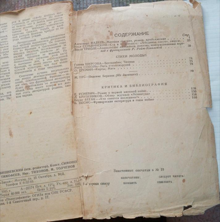 В военные годы на страницах журнала были опубликованы многие произведения, ставшие этапными и знаковыми для истории советской литературы, произведения, без упоминания которых невозможно говорить о становлении стержневой для всего ее последующего развития военной темы. Здесь печатались главы из поэмы А. Твардовского «Василий Теркин», поэмы П. Антокольского «Сын» и Маргариты Алигер «Зоя», «Падение Парижа» И. Эренбурга, «Волоколамское шоссе» А. Бека, «Дни и ночи» К. Симонова, первый вариант «Молодой гвардии» А. Фадеева…